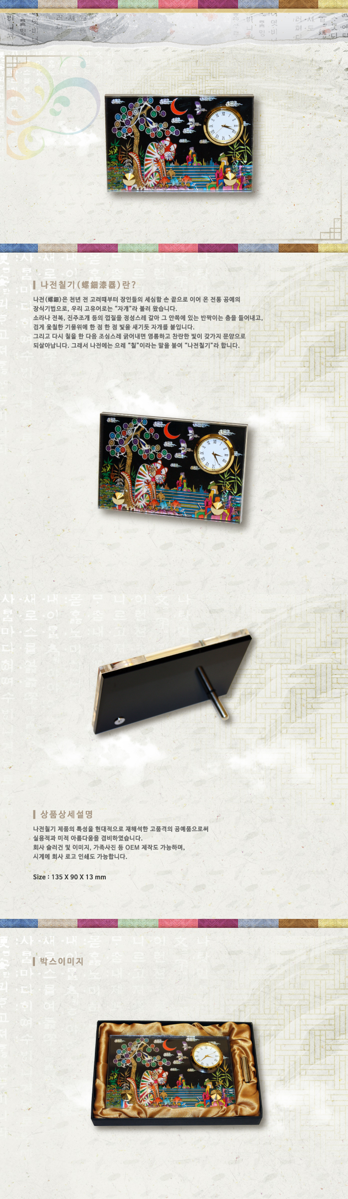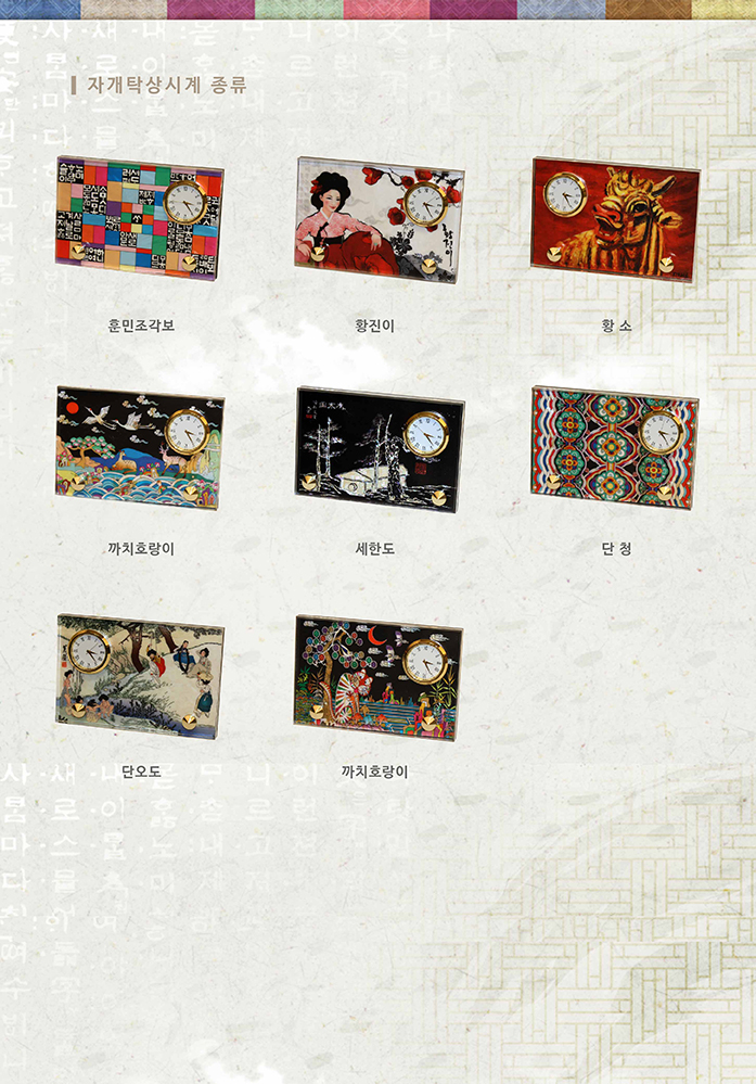 까치호랑이,나전칠기,예공,예공쉘크래프츠,자개탁상시계,자개,옻칠,탁상시계,공예품