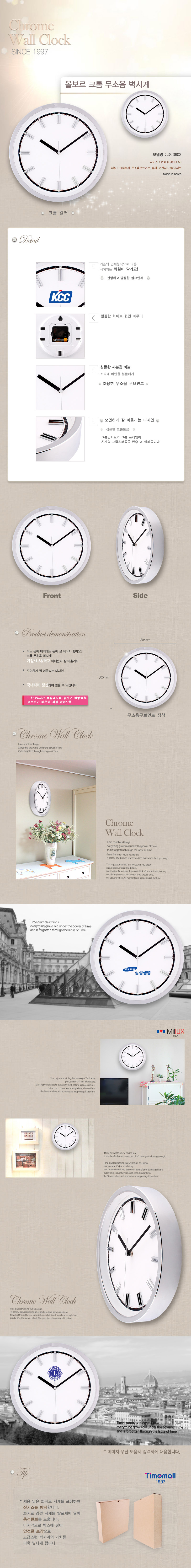 올보르 크롬 무소음 벽시계