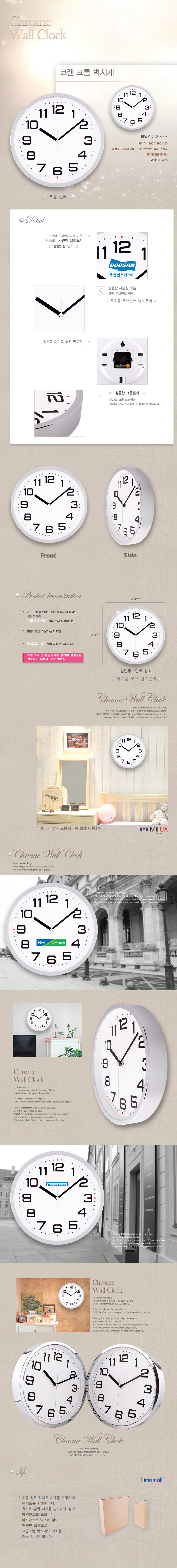 코렌 크롬 벽시계