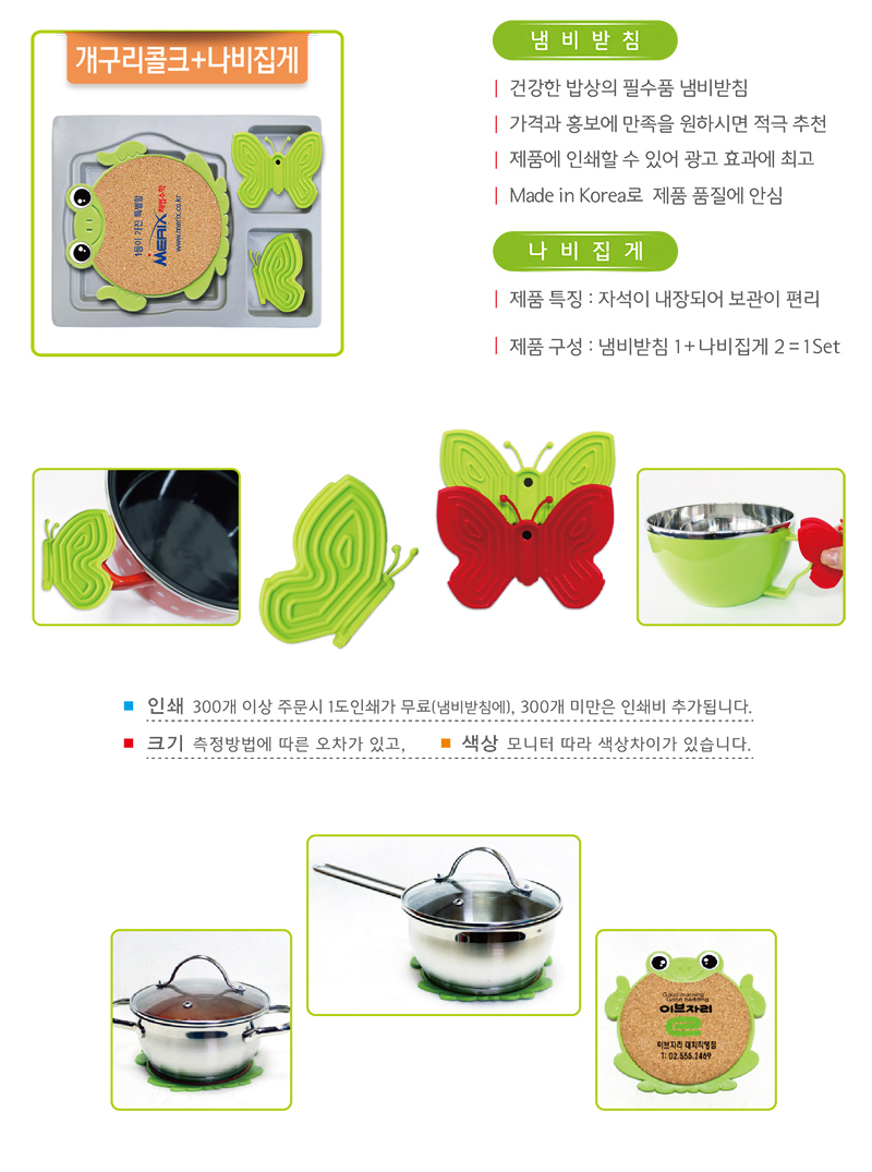 개구리콜크 냄비받침+실리콘 나비집게 Set