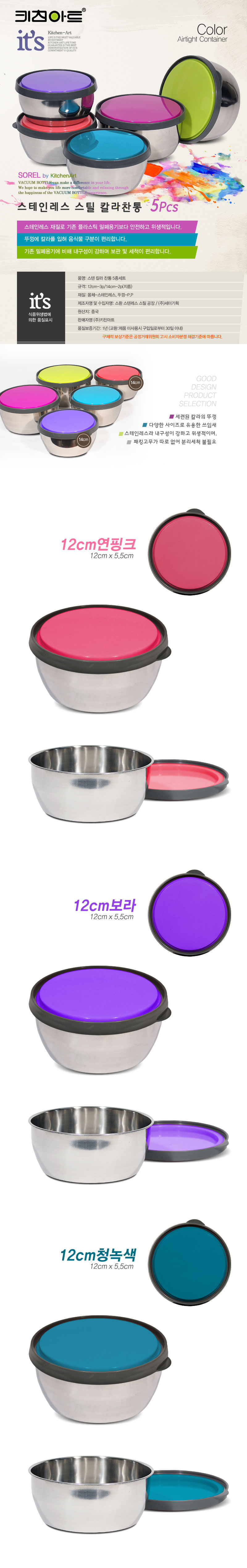 키친아트 칼라 찬통5종