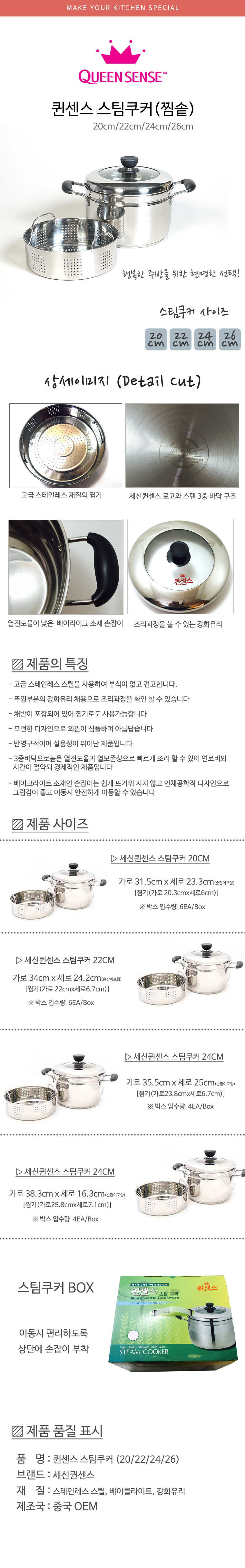 퀸센스 스팀쿠커 (20,22,24,26cm)
