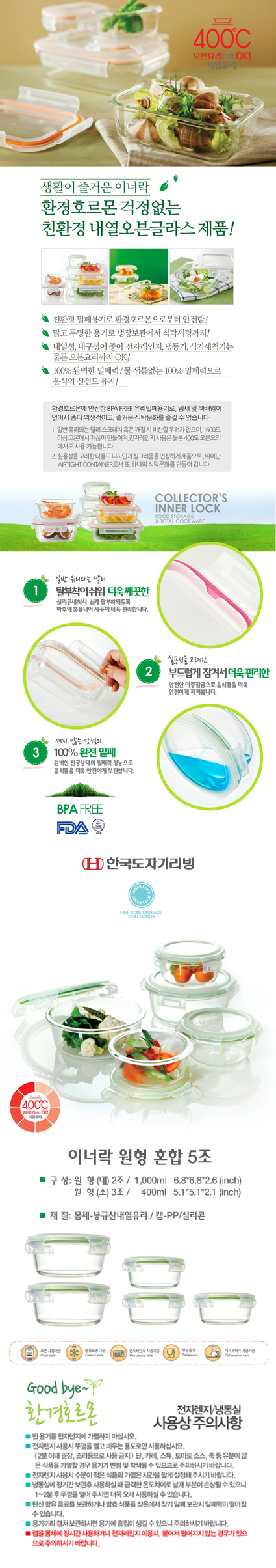 • 원형대(1100ml)2조, 소(400ml)3조
