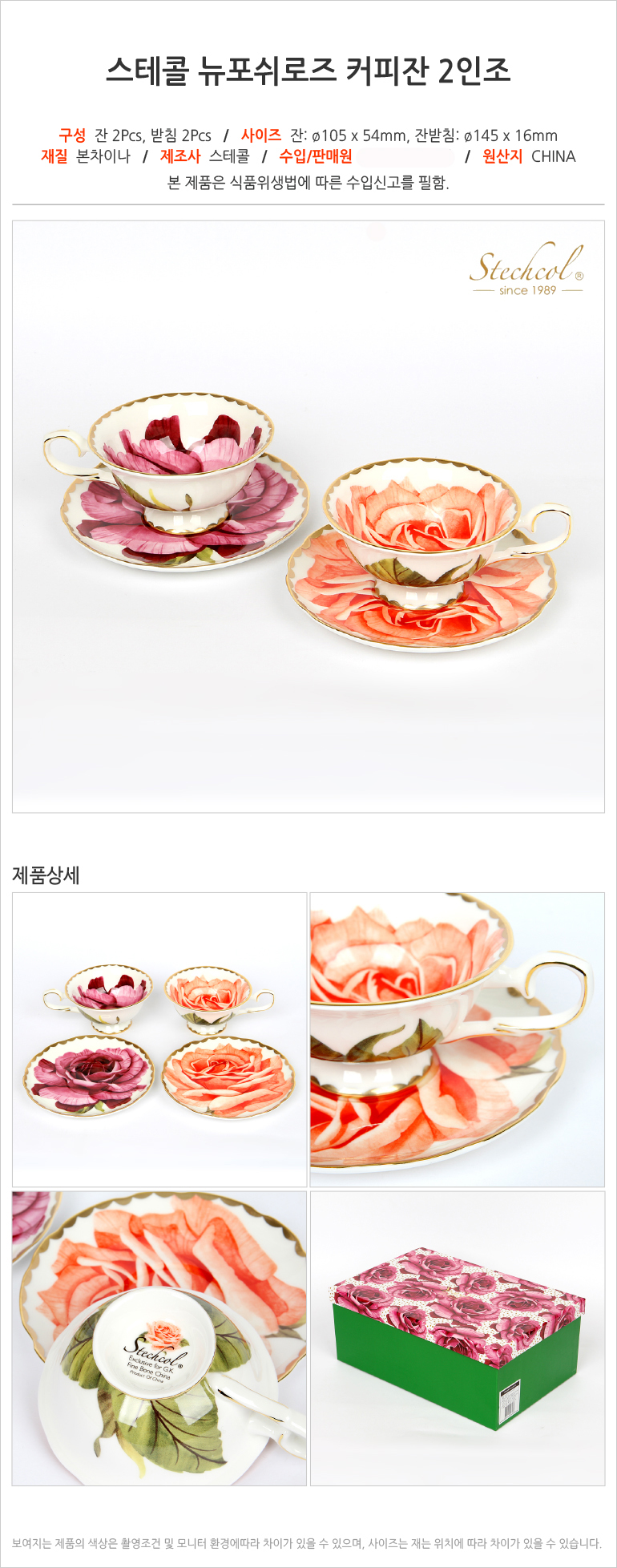스테콜 뉴포쉬로즈 커피잔 2인조
