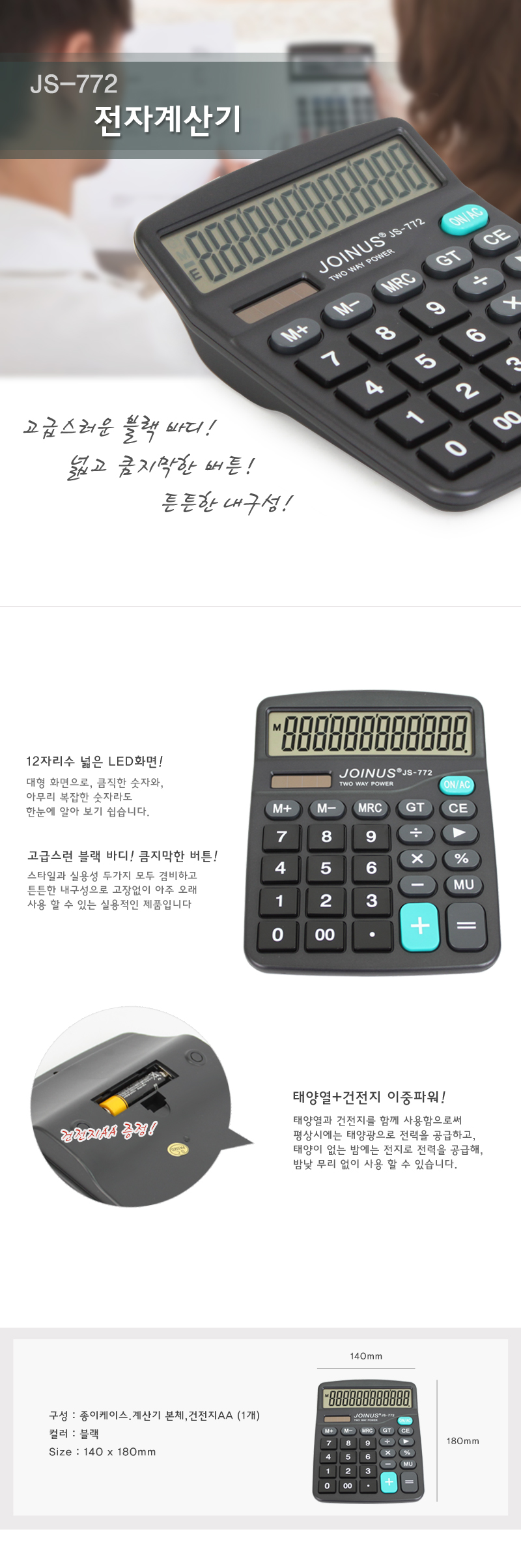 오리지날 솔라 계산기로 2Way방식으로 사용이 가능합니다