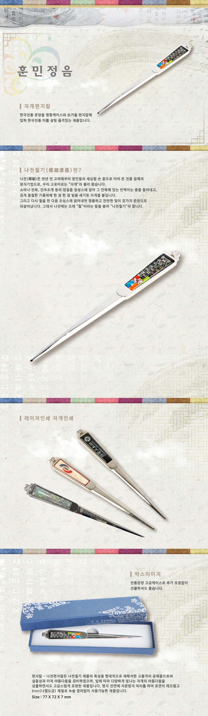 훈민정음,지칼,편지칼,편지칼세트,지칼세트,나전칠기,예공,예공쉘크래프츠