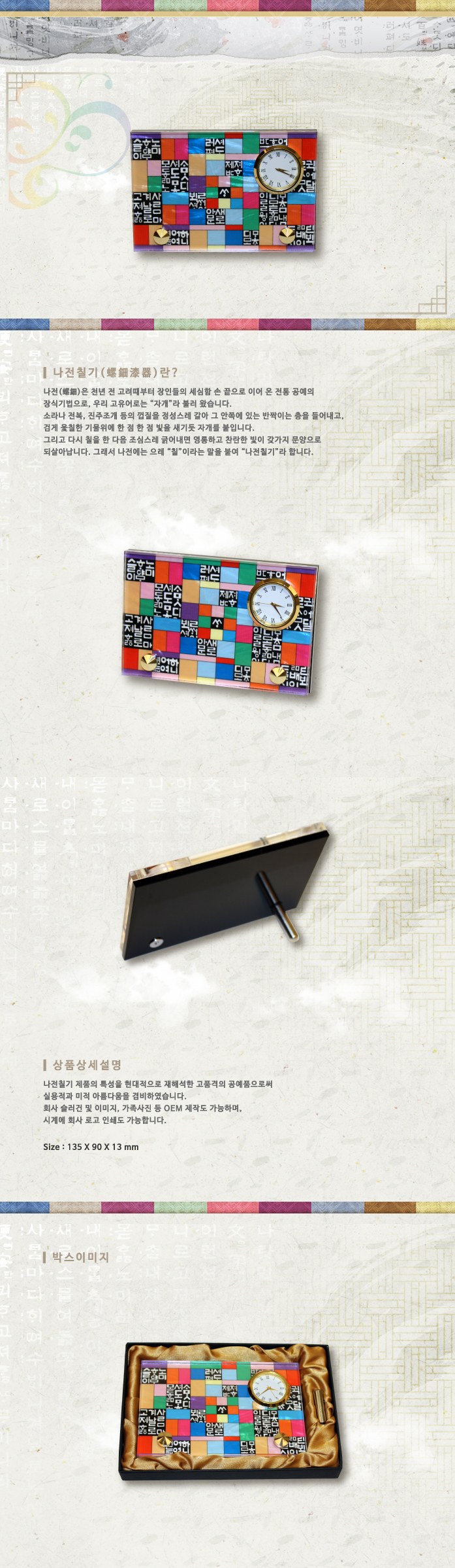 훈민조각보,나전칠기,예공,예공쉘크래프츠,자개탁상시계,자개,옻칠,탁상시계,공예품