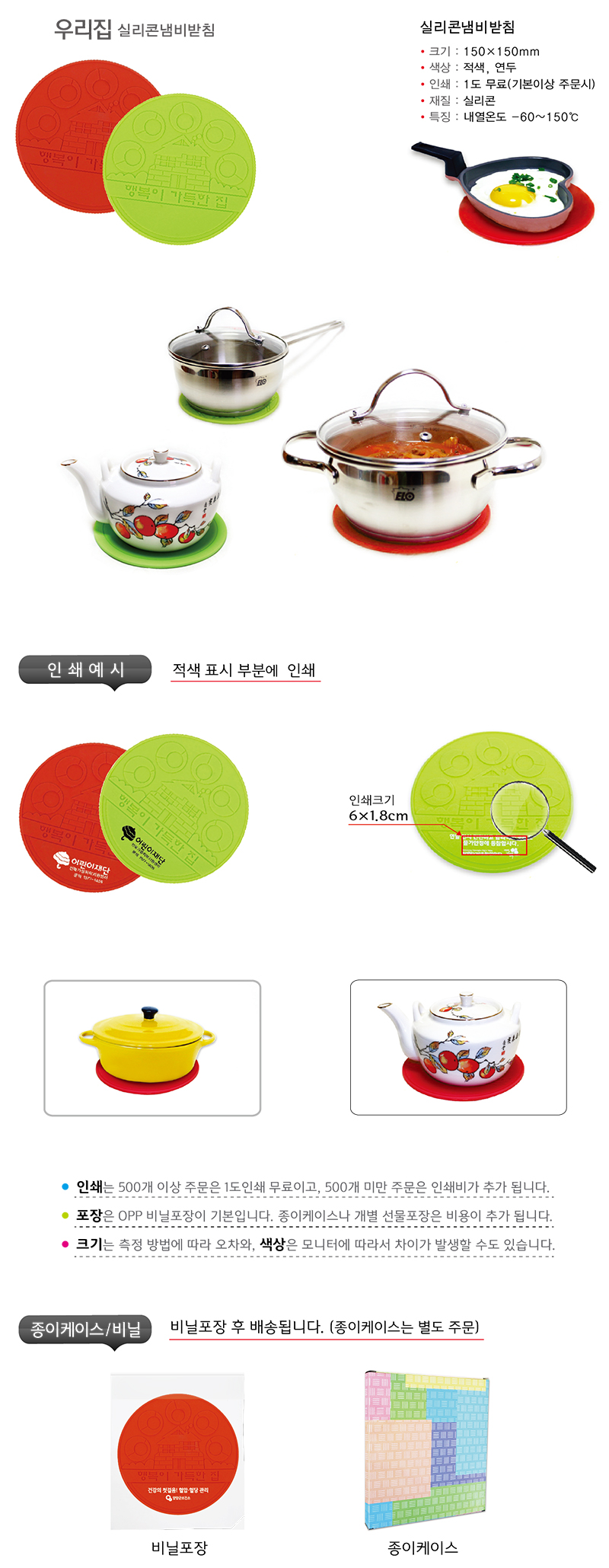 실리콘 냄비받침(연두/적색)