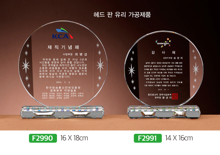 [크리스탈상패] F2990F2991 워너9호 391