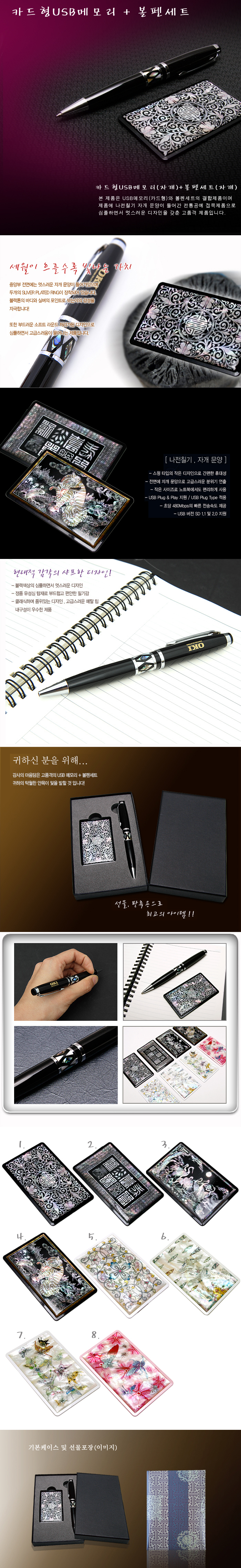 JS-0099 자개볼펜+카드형USB메모리세트 4~64G