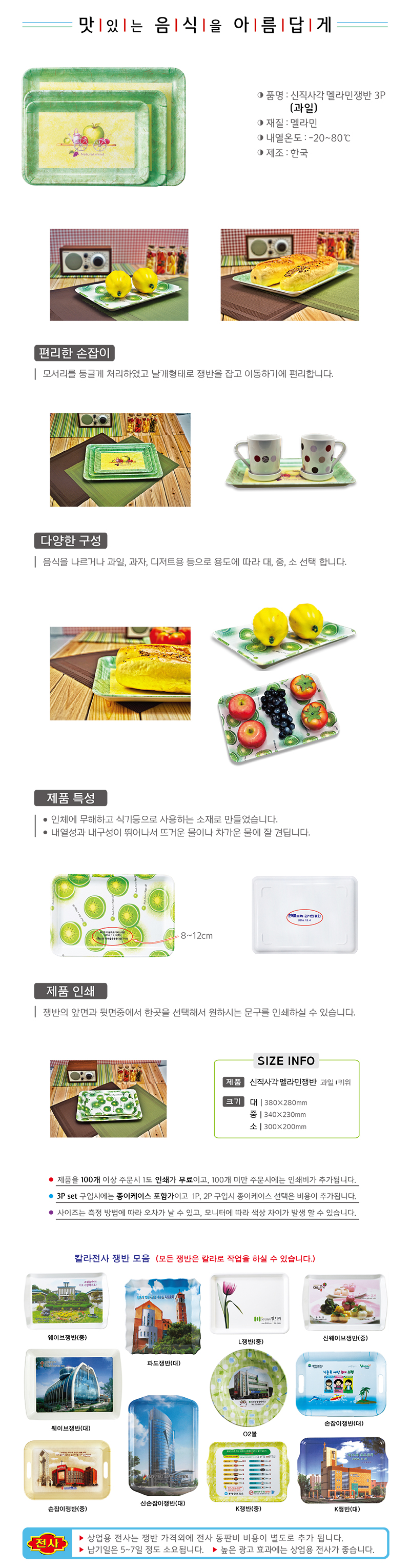 신직사각 멜라민쟁반(과일) 3P