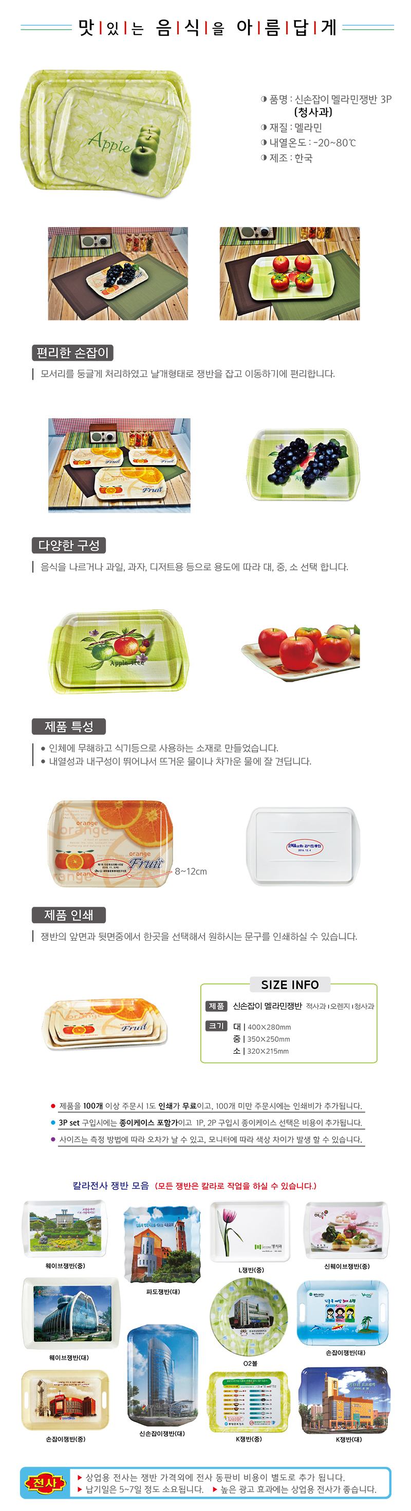 신손잡이 멜라민쟁반(청사과) 3P