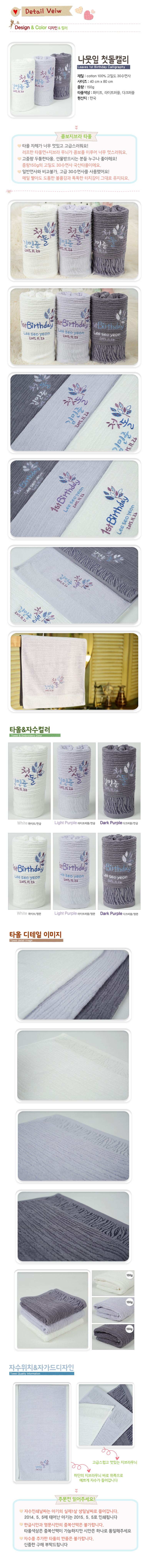 [케릭터/케익타올]나뭇잎첫돌캘리 세면타올