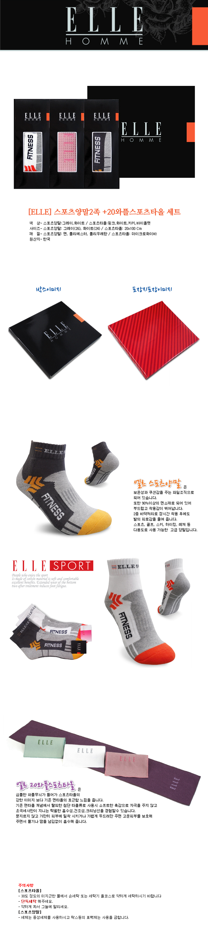 엘르 스포츠양말 2족세트+스포츠타올 세트