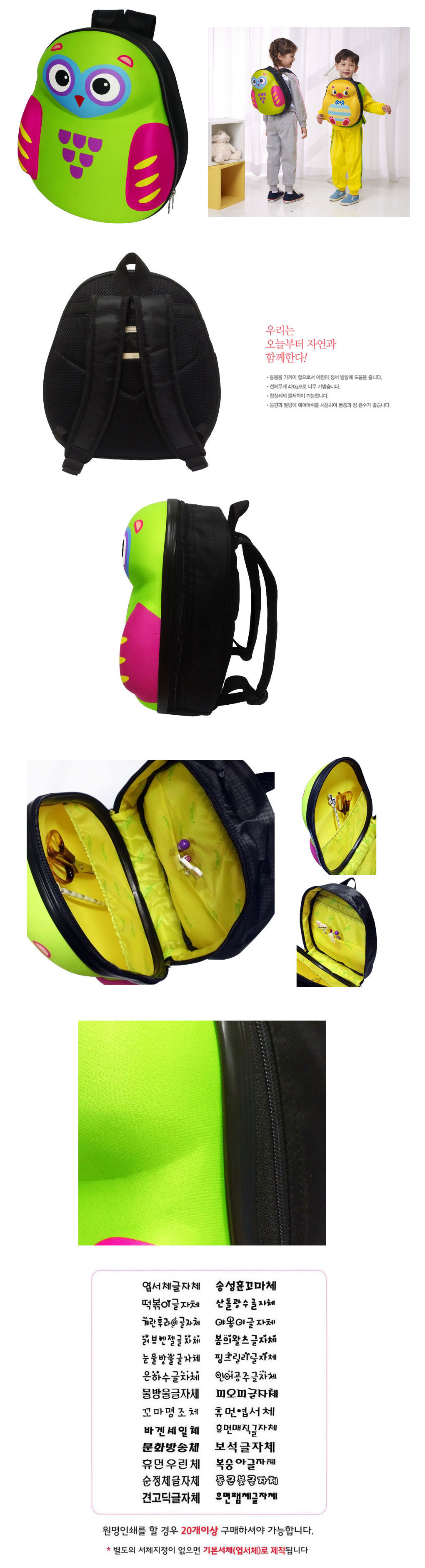 부엉이B 3D애니멀배낭-中