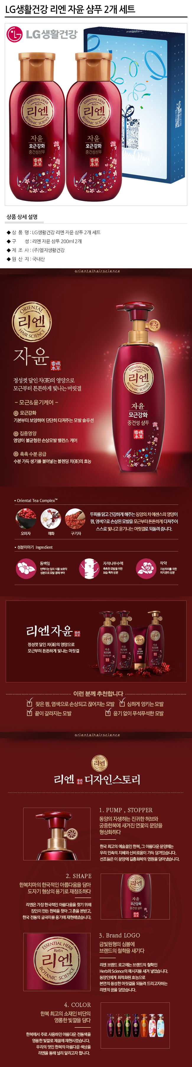 LG생활건강 리엔 자윤 샴푸 200ml x 2개 세트 / 101-200672