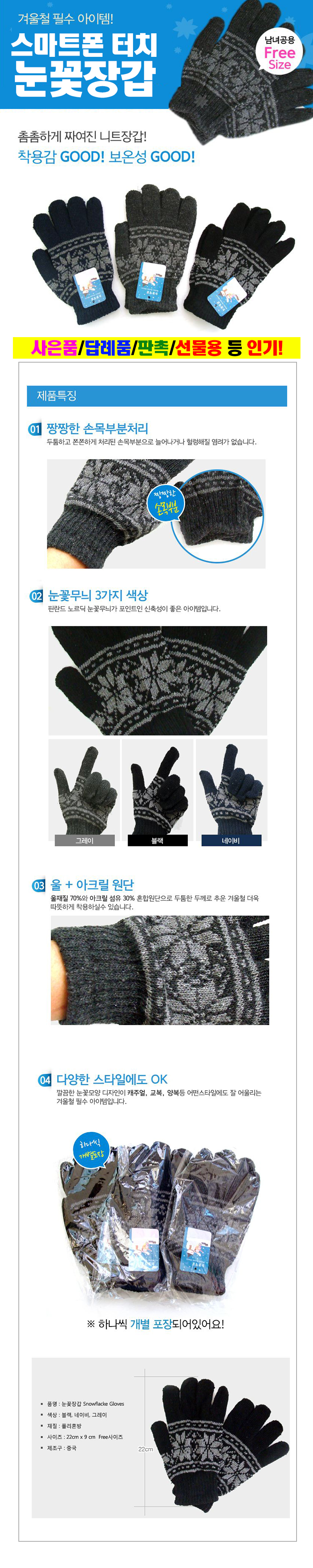 따스한-(눈꽃)스마트폰 터치장갑-고급형 /색상다양 -인쇄스티카부착시 문의 !!
