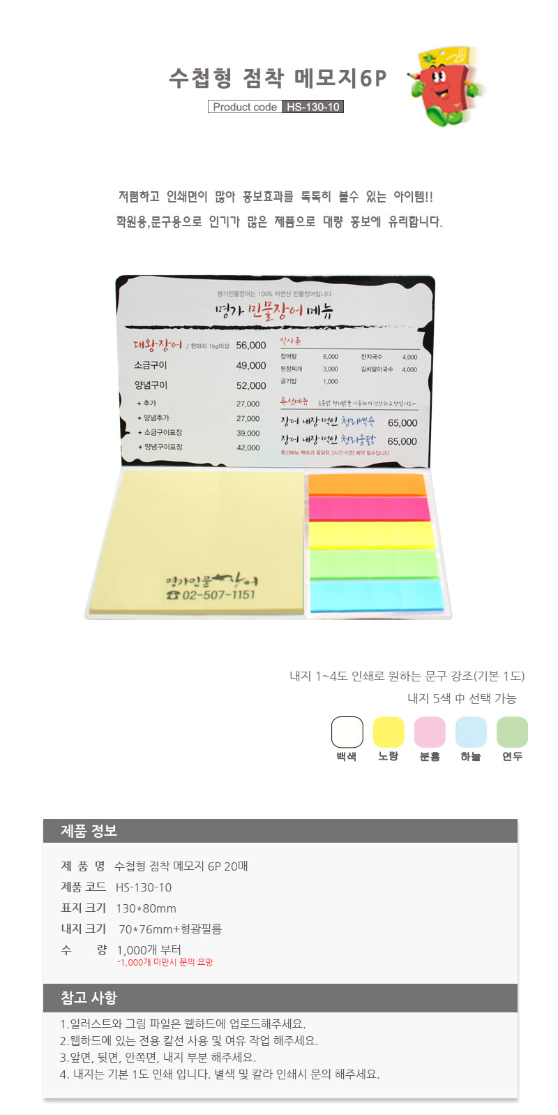 수첩형 점착 메모지 HS-130-10