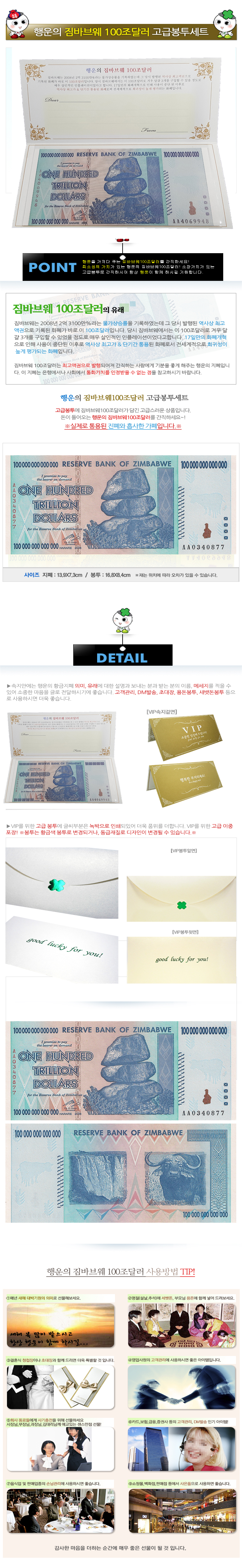 행운의 짐바브웨 100조달러 고급봉투세트