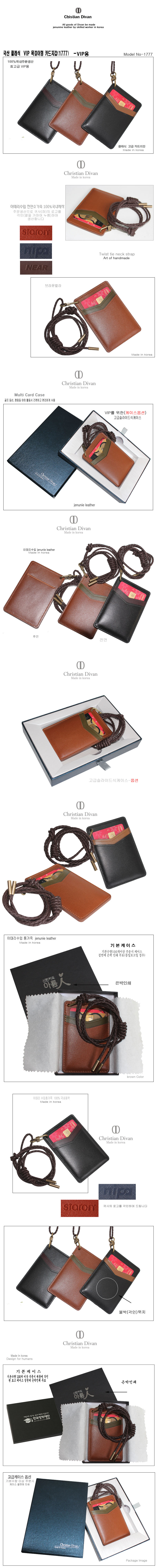 ◆국산100% 클래식 VIP 카드지갑(1777)◆-재질:이태리수입 통가죽-원산지:100%국내제작-색상:블랙/브라운 칼라 중 택일-size:75*110mm -Printing size:40*50mm-인쇄:앞면또는 뒷면하단에 각인(열을 가하여 가죽을 누름)-구성:앞면카드칸2개 뒷면카드또는신분증칸 1개