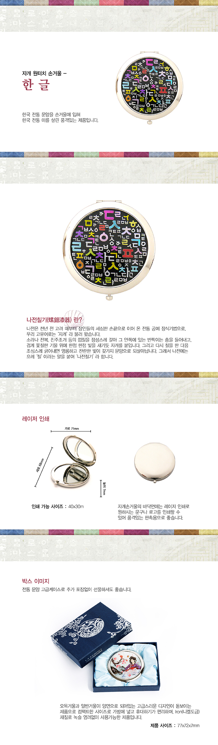 한글,원터치,원터치거울,원터치손거울,손거울세트,거울세트,휴대거울,휴대용손거울,손거울,손잡이손거울,나전칠기,예공,예공쉘크래프츠