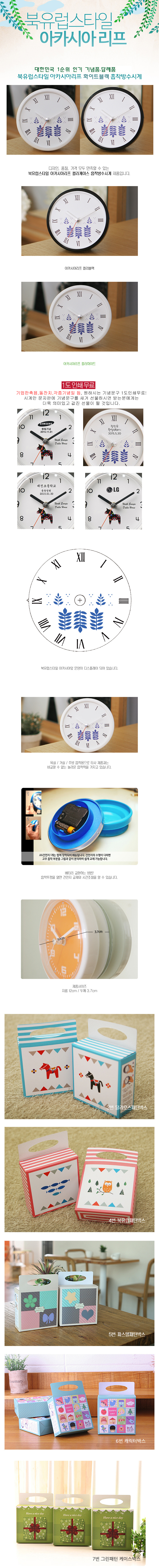북유럽스타일 아카시아리프 화이트블랙 흡착방수시계