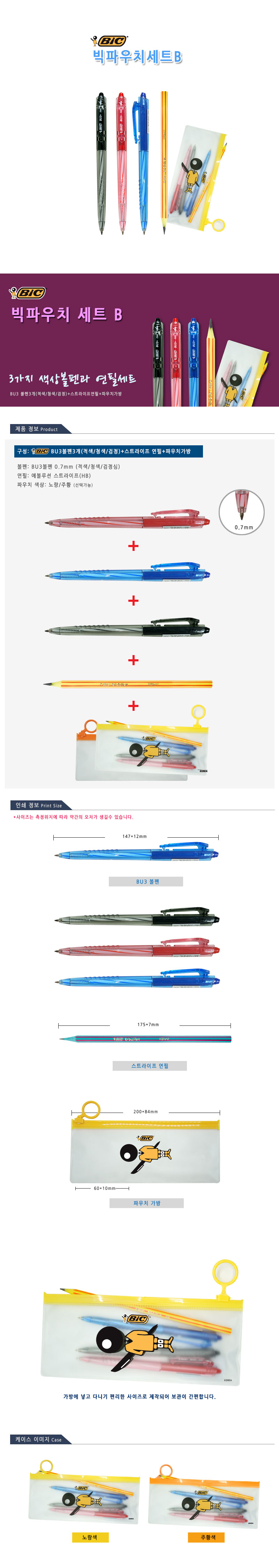 빅BU3볼펜과 연필을 예쁜 파우치에 담았습니다.