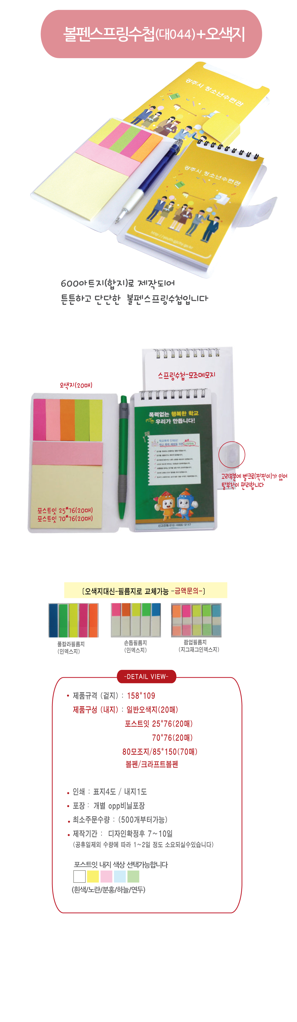 볼펜스프링수첩(대044)-오색지