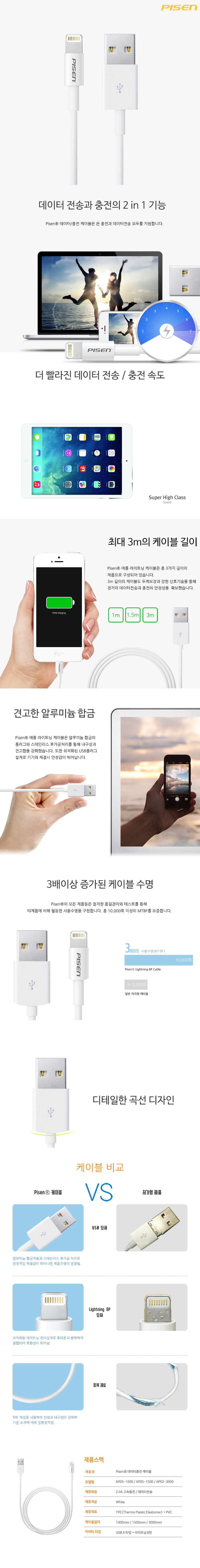 피센 라이트닝 데이터 충전 케이블 3M