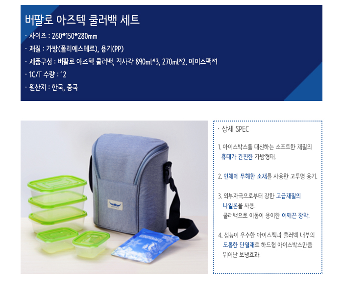 • 가방 : 폴리에스테르, 용기 : PP