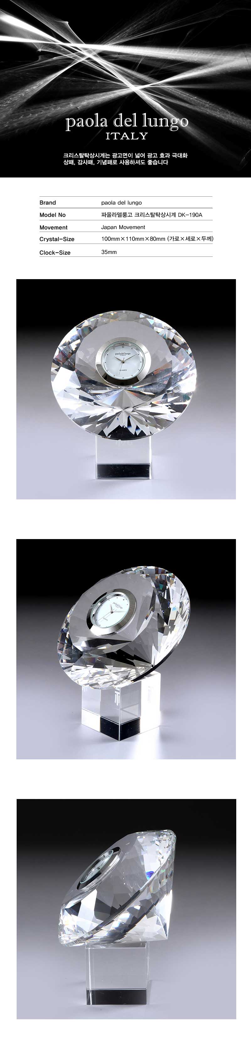 맑고 투명하여 영롱한 분위기를 연출하는 세미크리스탈 시계기념패