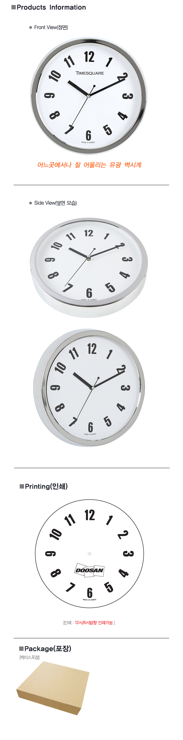 무소음 메탈유광 벽시계 305MK