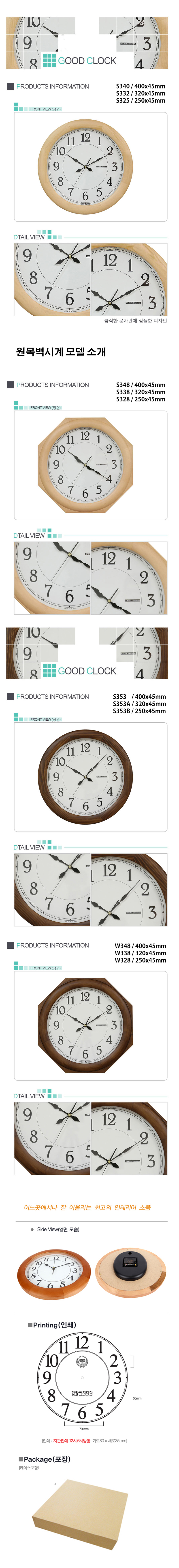 패미리 원목원형 벽시계 340/332/325
