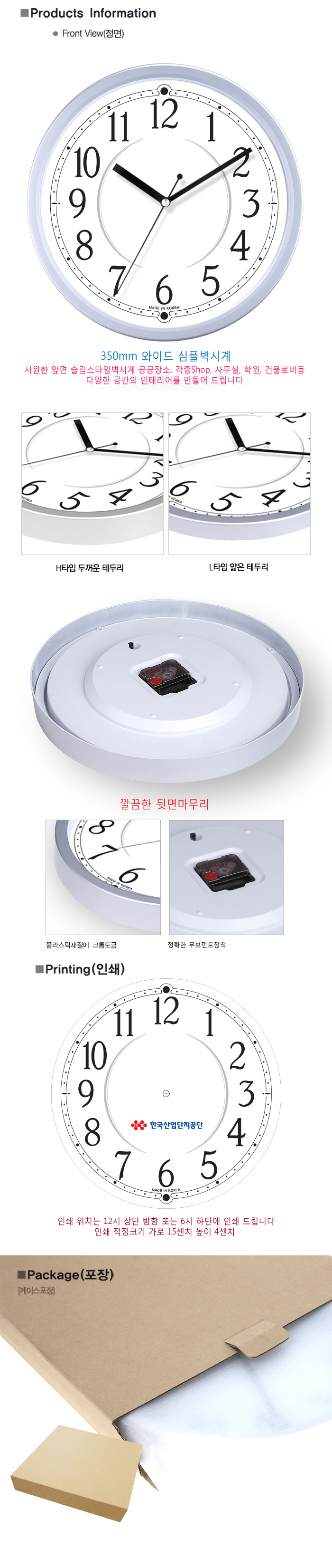 무소음 원형벽시계 350GGH실버