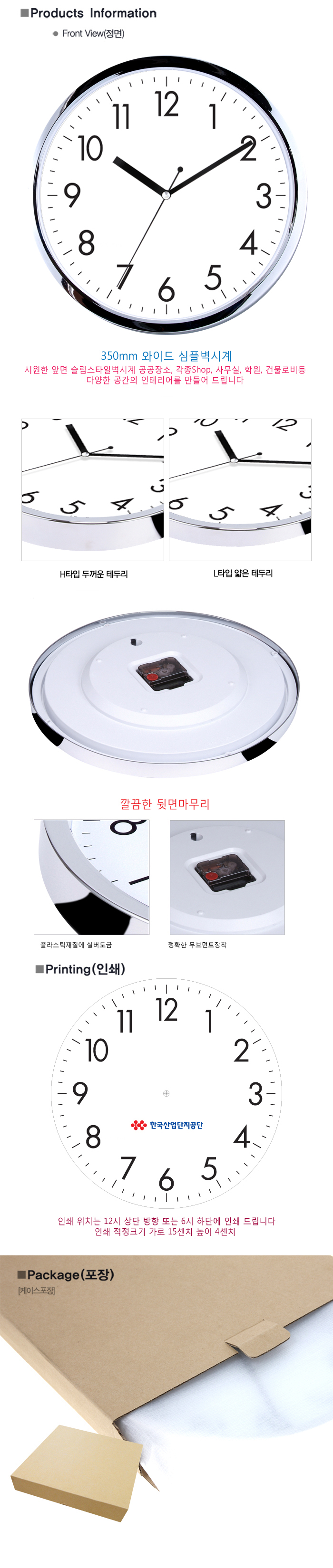 무소음 유광도금 벽시계 350KF