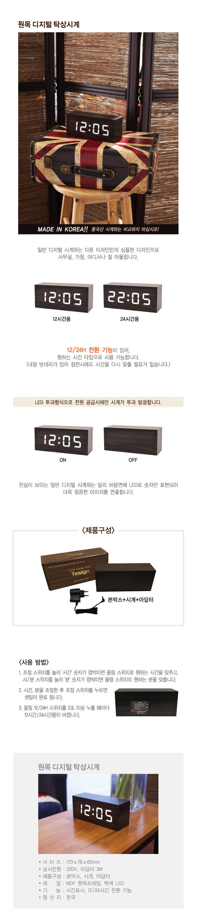 LED전파수신 탁상시계335A