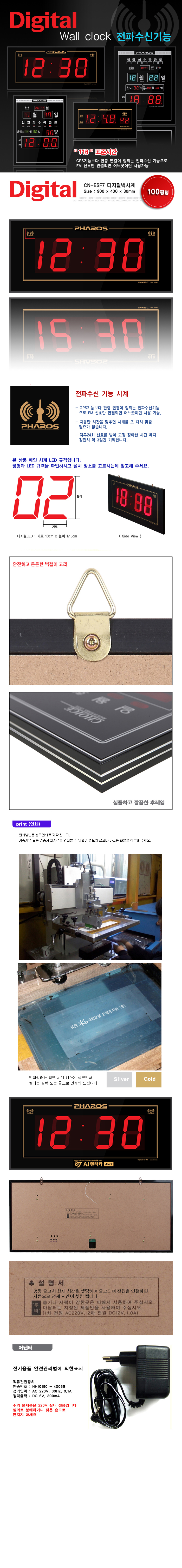 디지털벽시계 전파수신 대형 100평형 ESF7