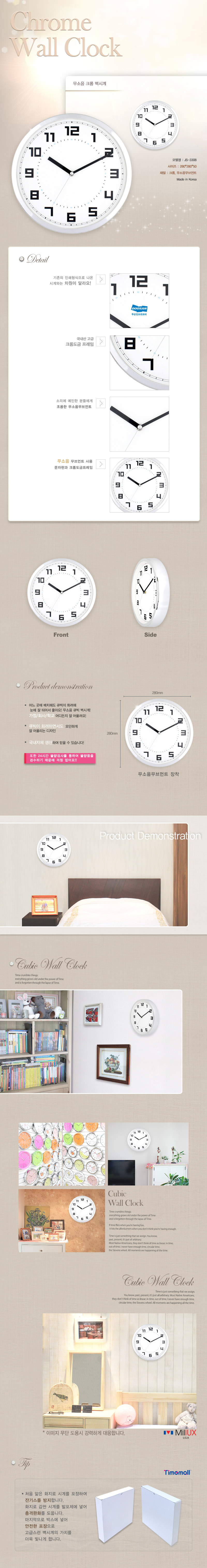 • 크롬무소음벽시계3308