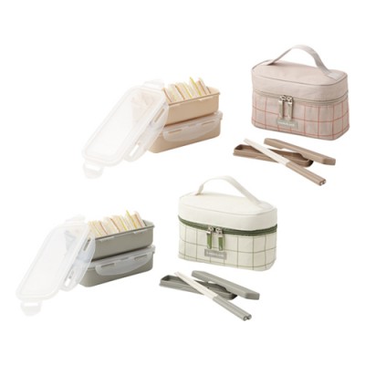 락앤락 젓가락이 들어있는 2단 도시락세트 체크(M) _ 오렌지/그린