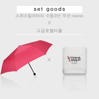 호텔수건+스위스밀리터리 수동3단 우산(NM006) 타올세트