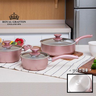 로얄그래프톤 로사 인덕션겸용(IH) 세라믹코팅 냄비 종합3종 (양수18+편수16+궁중24)