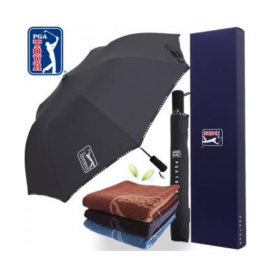 PGA 2단자동 로고바이어스우산+170g 죽사타올 세트