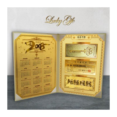 [럭키기프트]2018년 캘린더 황금지폐3종 고급케이스A4-성공기원